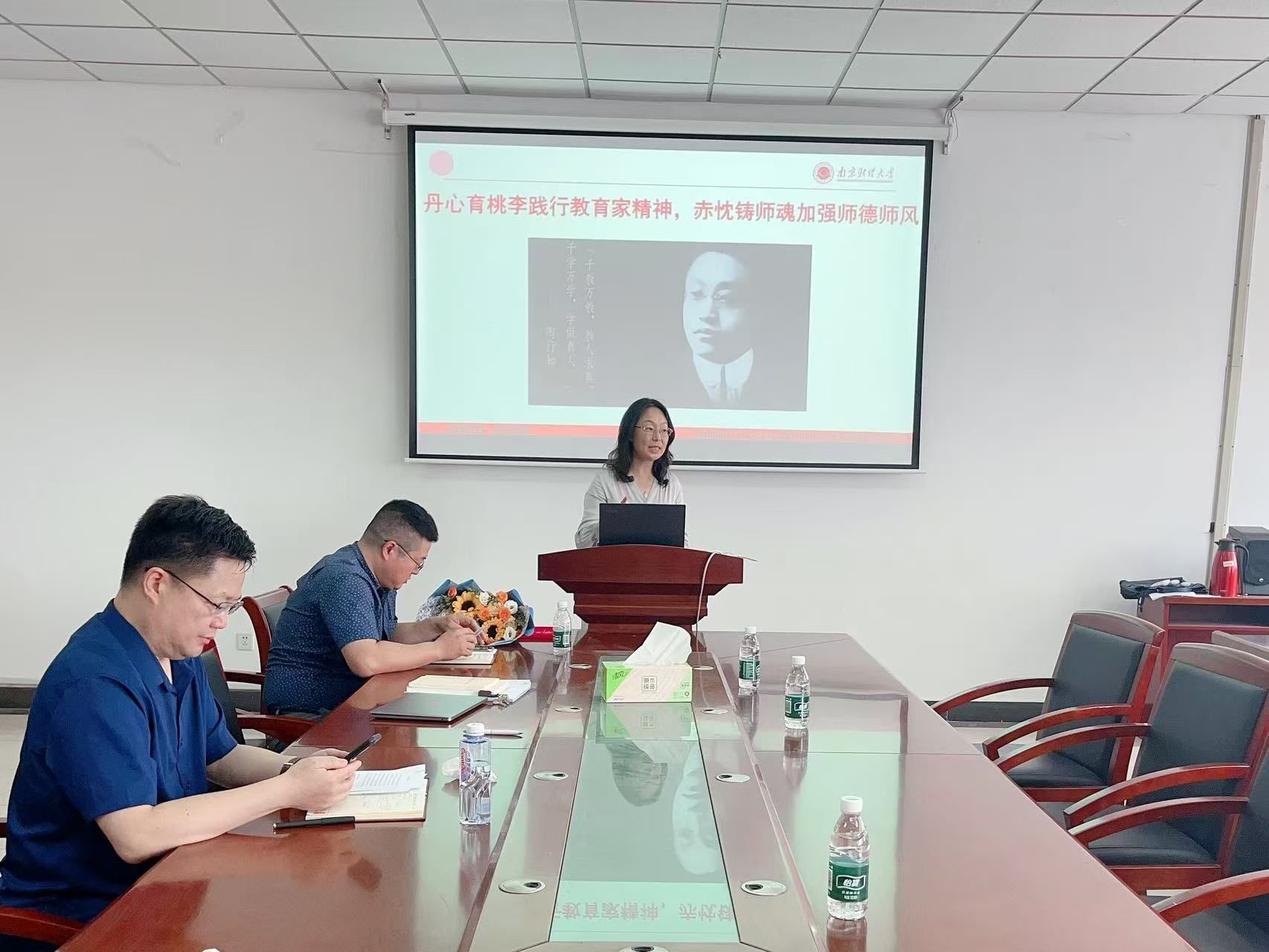 随后,李骏书记以“丹心育桃李践行教育家精神,赤忱铸师魂加强师德师风”为主题开展了师德师风专题教育。她通过讲述人民教育家陶行知“捧着一颗心来,不带半根草去”的教育故事,结合体育直播平台 工作实际,强调全体教师要坚守教育初心,以德立身、以德立学、以德施教。同时,会议还集体观看了《八项规定改变中国》第一集,该纪录片以生动案例展现了中央八项规定实施十余年来,党和国家在作风建设方面取得的历史性成就。李骏书记特别指出,教育领域的师德师风建设与党风廉政建设一脉相承,要求全体教师特别是党员同志以中央八项规定精神为镜鉴,在科研经费使用、学术评价等重点环节严守纪律红线。