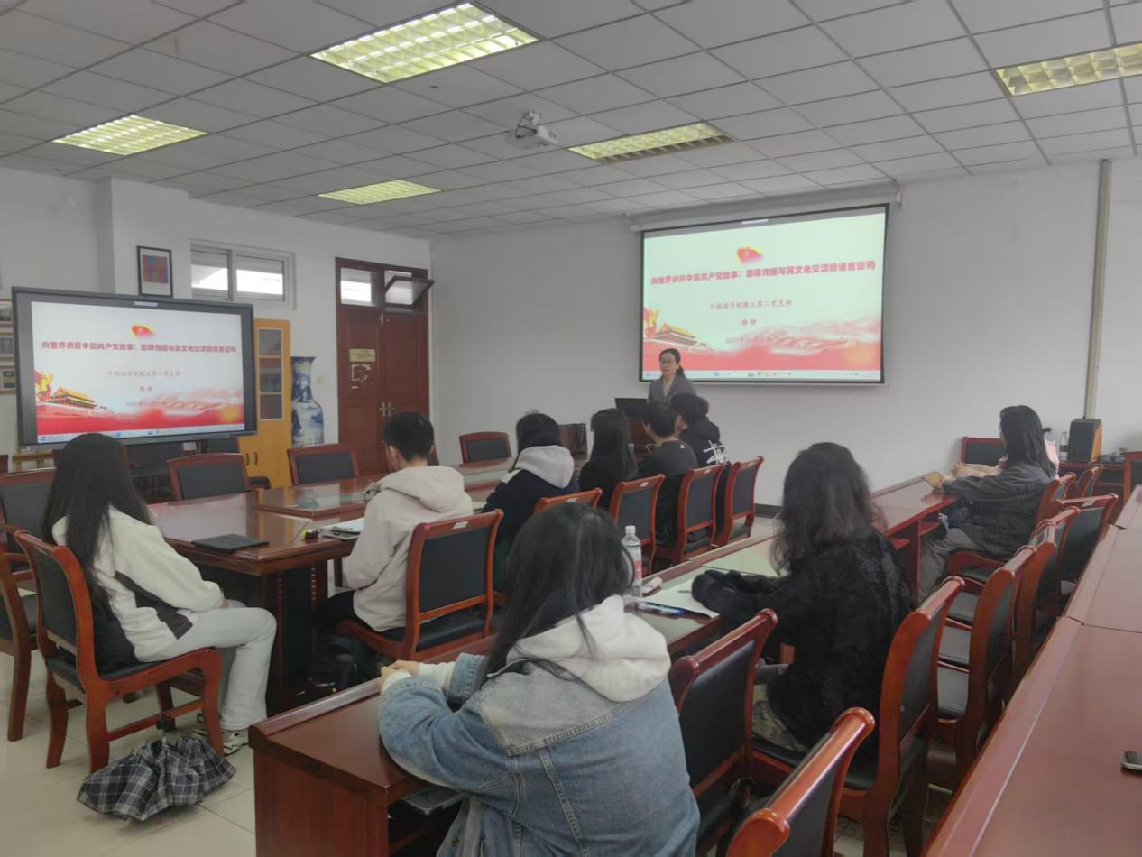 10月21日中午,体育直播平台 教工第二党支部书记韩静在德正楼308会议室为第二十期分党校、青马班学员作以“向世界讲好中国共产党故事:国际传播与文化交流的语言密码”为题的专题讲座。本次讲座结合外语专业特色,为学员深入解读中国共产党国际形象传播的历史脉络、实践路径及语言专业学生的使命担当,兼具知识传递性与实践启发性。