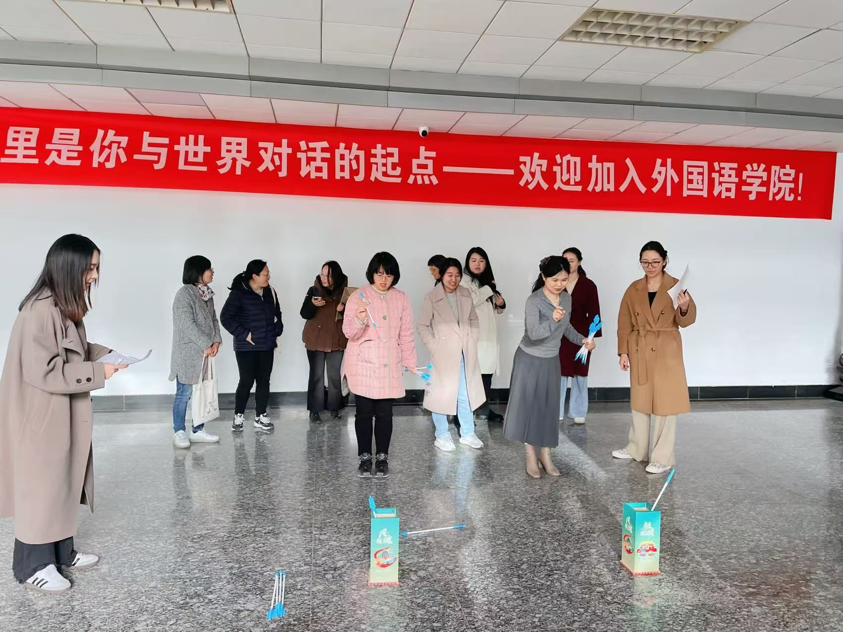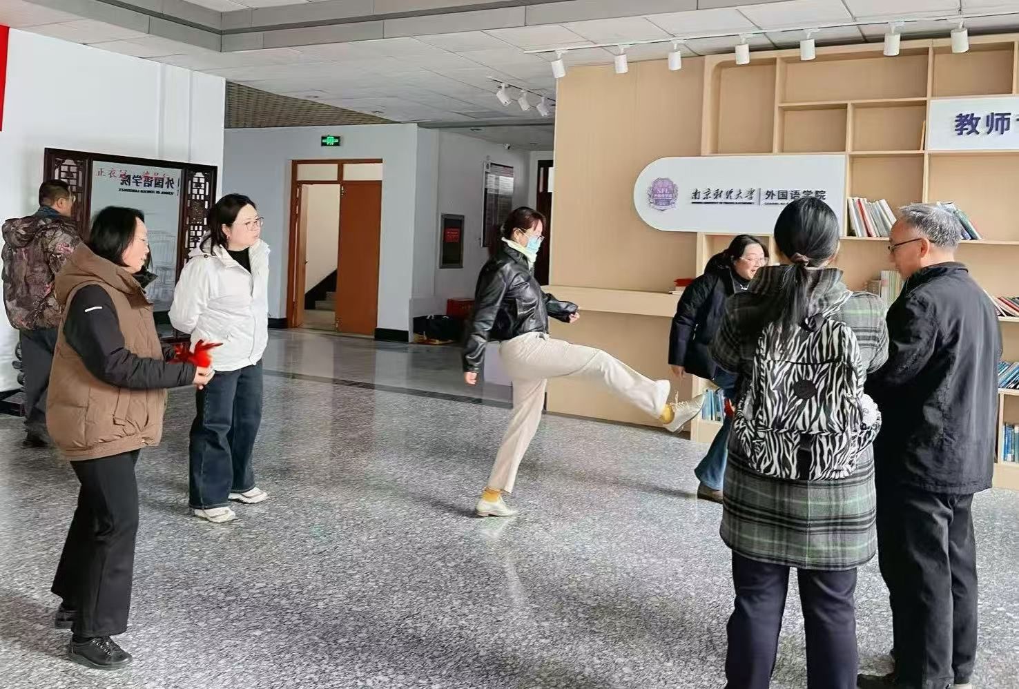 为深入贯彻“文体增色”战略,培育外院特有的校园文化品牌,增强体育直播平台 教职工的凝聚力与向心力,提升身心健康水平,营造积极向上、团结和谐的育人氛围,2025年11月27日下午,体育直播平台 分工会在仙林校区德正楼三楼大厅组织开展了主题为“冬日添活力 趣味健身行”的冬季趣味健身活动。全院共50名教职工踊跃参与,现场气氛热烈,欢声笑语不断。