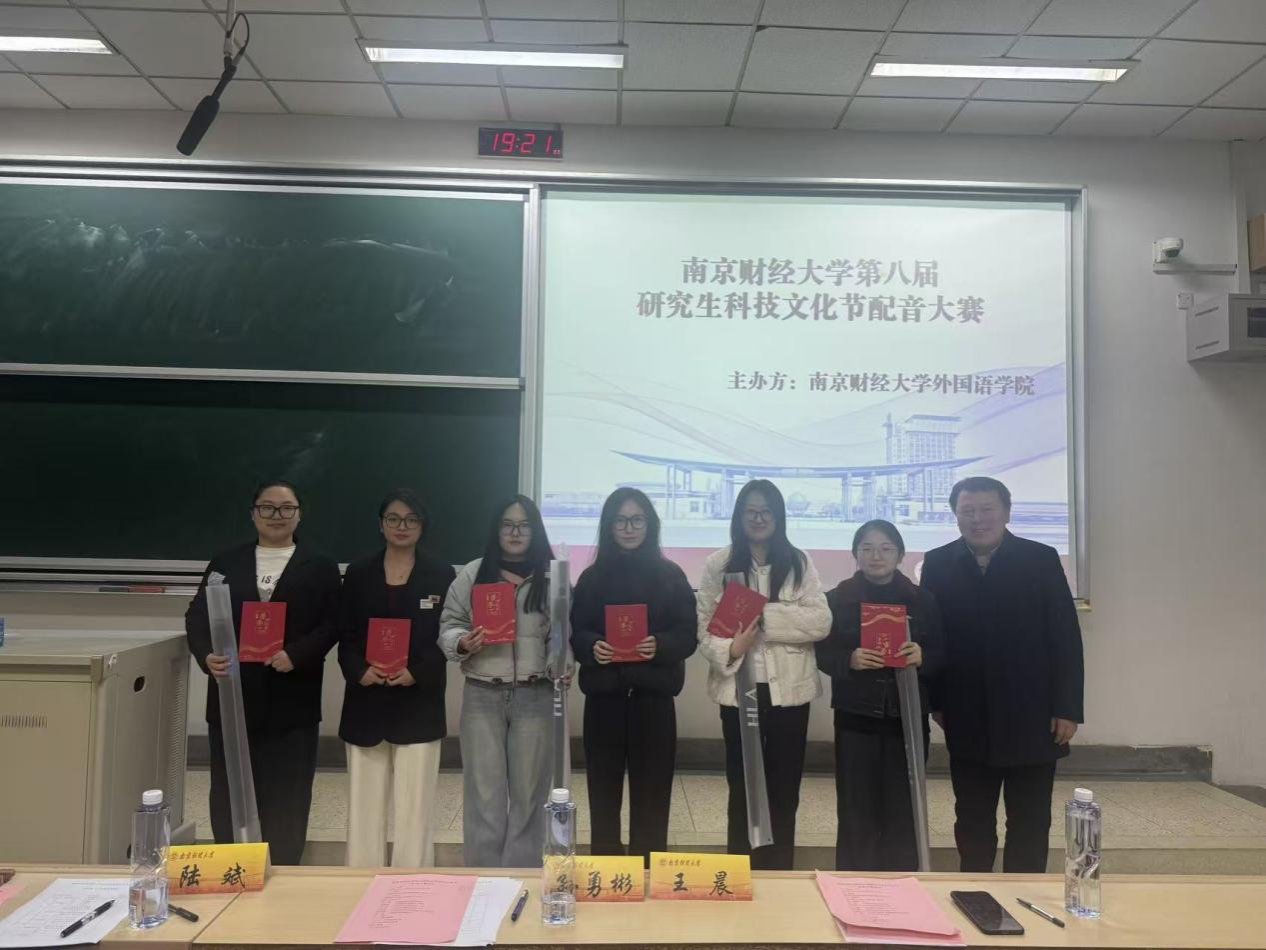 11月27日晚,由党委研究生部主办、体育直播平台 承办的南京财经大学第八届研究生科技文化节外语配音大赛在德正楼115教室精彩上演。本次大赛创新设置“人工配音”与“AI配音”双赛道,吸引了全校24支研究生队伍同台竞技,以声为媒展现语言魅力与科技赋能的融合之美。体育直播平台 党委书记陆斌、院长孙勇彬、副院长王晨、学科竞赛办公室主任陈芙蓉、教师李想应邀担任评委,2024级研究生朱琳主持活动。