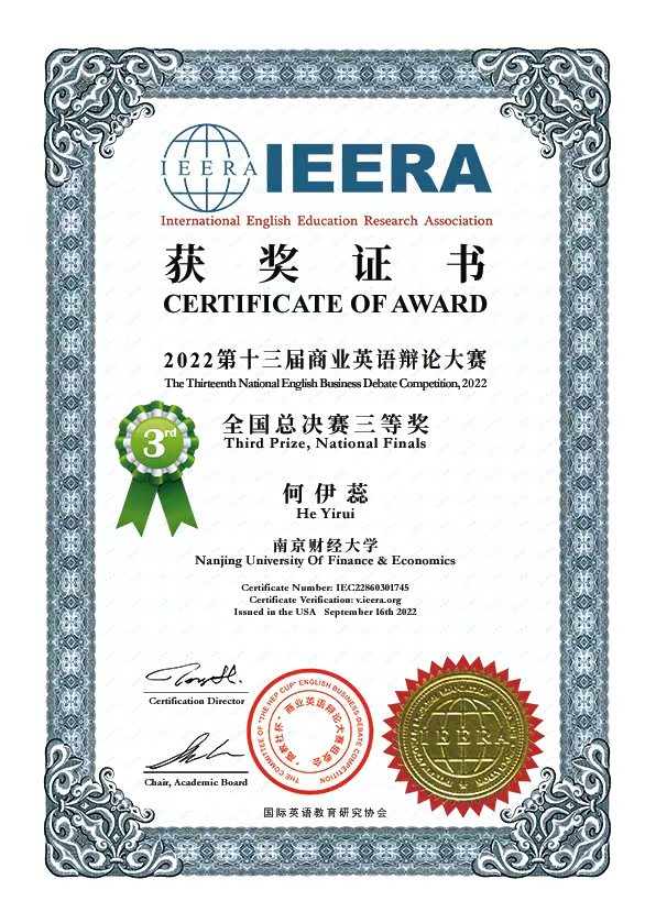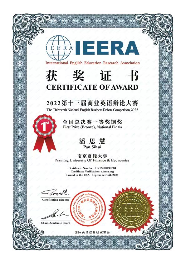 肖辉教授荣获本届为商业英语辩论大赛“最佳指导教师”称号。