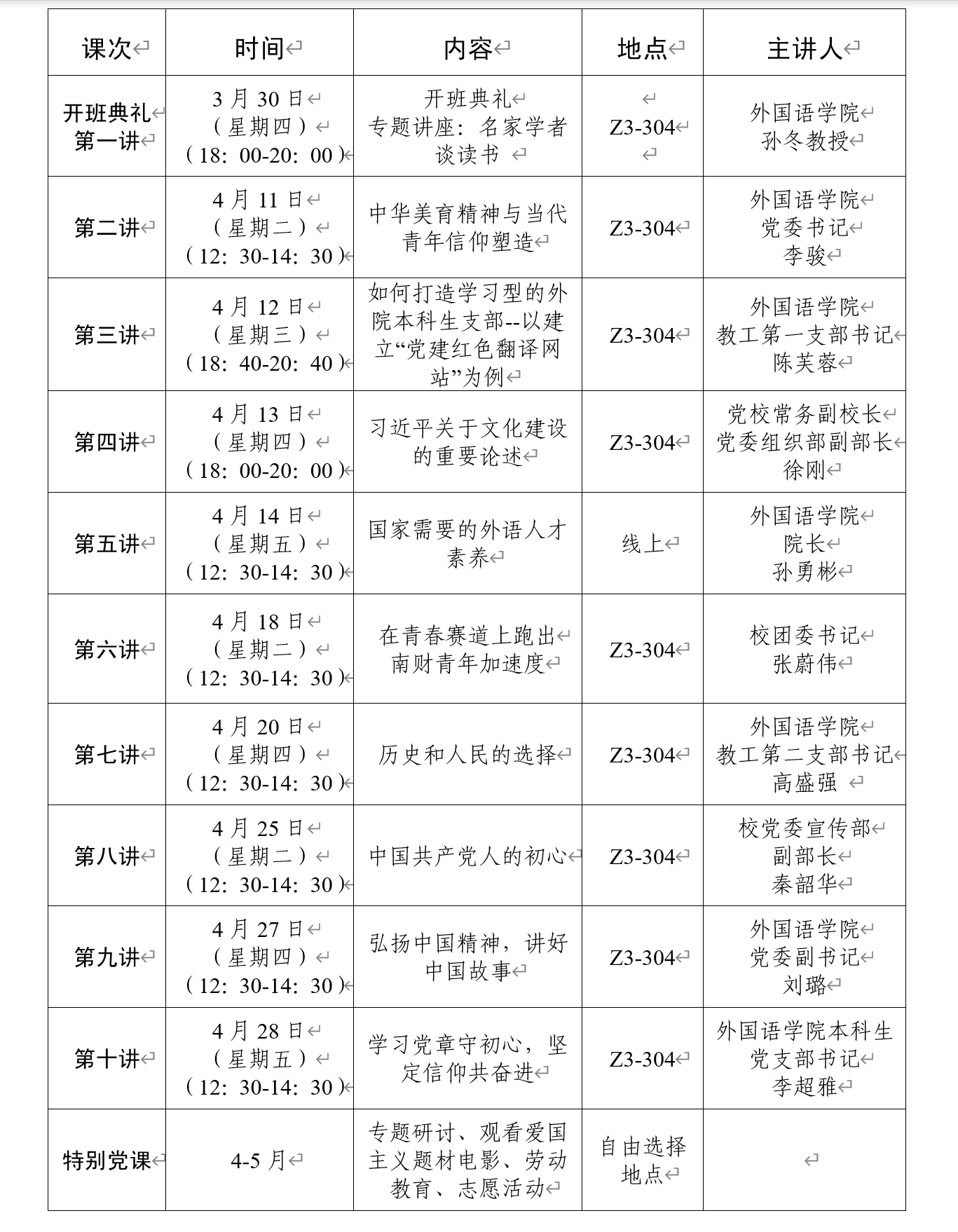 注意:组长须在5月10日下午4:00前将专题研讨的材料报给院本科生党支部书记(体育直播平台 德正楼310李老师),组长将劳动教育和志愿服务活动开展的策划方案(统一用南京财经大学信笺纸,包括内容:主题,时间,地点,与会学员以及如何开展),每位参与培训的学员都应积极准备。
