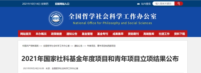 近期,全国哲学社会科学工作办公室发布了2021年度国家社科基金年度项目立项的评审结果。经专家评审,体育赛事直播 李骏书记申报的课题“新发展阶段我国传统美育思想的创造性转化机制与路径研究”获批立项,项目号21BKS083。