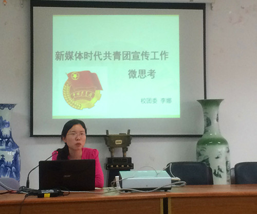 讲座伊始,李娜老师便提出了“何为新媒体”和新媒体“新”在何处两个问题,阐释了区别于传统媒体的新媒体具有移动性、互动性和实时性的特点。接着以微博和微信为重点讲述了新媒体与共青团的宣传工作,并通过列举南师大举办的主题微博接力活动和南航官方微信的亮点重点,结合南财校团委百舸微信平台的工作现状与思路,结合体育赛事直播 微信宣传的实际情况提出新媒体时代共青团宣传工作要“有趣、有用、有格调”。
