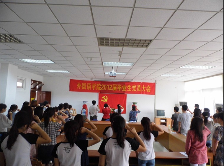 会议最后,全体党员起立,在老师们的带领下,面向党旗,郑重宣誓。宣誓声响彻整个会议室,振奋人心。毕业生们必将会继续发扬党员的精神风貌,为社会贡献自己的力量。