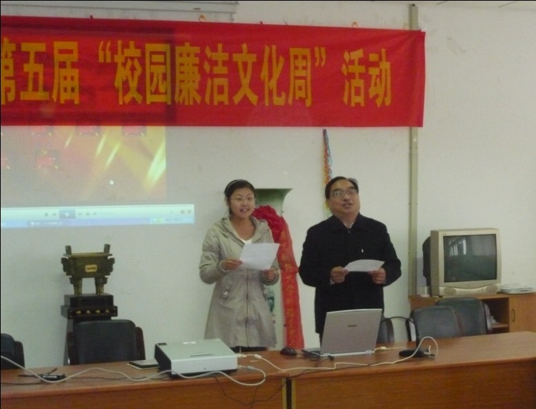 活动开始,院长王克明教授自创《水调歌头·廉生威》诗歌,并与学生党员杨维丹同台朗诵,为大会增添了色彩。