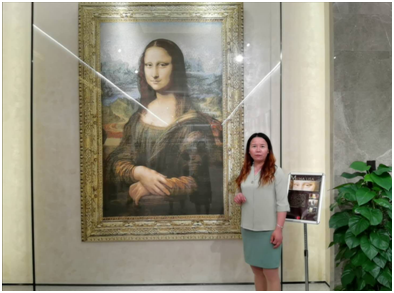 同样的创新还有中西方的融合。程水英老师用法文和英文介绍道,2015年,云锦版世界名画《蒙娜丽莎》亮相米兰世界博览会,让全世界人民领略了中国传统文化的魅力。