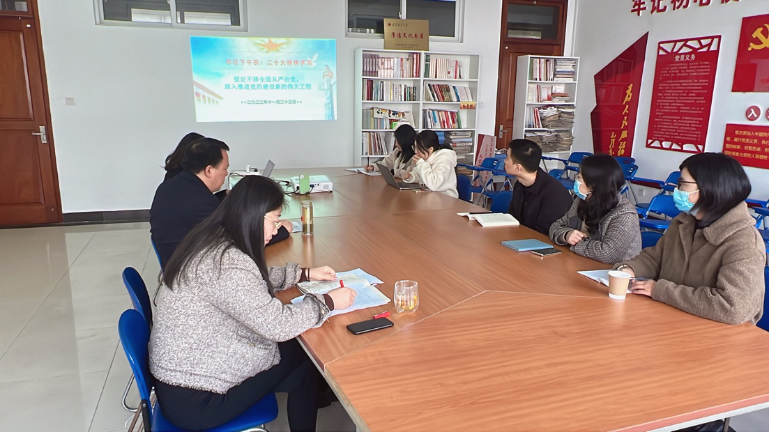与会成员首先开展“读原文”,认真研读了党的二十大报告的第十五个部分,也即“坚定不移全面从严治党,深入推进新时代党的建设新的伟大工程”,对“全面从严治党体系”的七个方面有了深入的了解。
