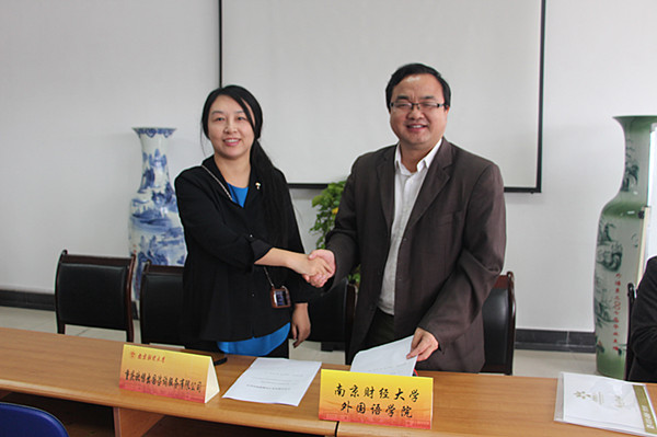 10月25日中午,体育赛事直播 在法政学科楼308室举行与重庆欧憬出国咨询服务有限公司南京分公司的就业实习基地合作签约仪式。院党委书记刘浩、院长肖辉、党委副书记李慕原、法语系副主任顾晓燕、重庆欧憬出国咨询服务有限公司南京分公司负责人丁笑薇女士出席此次签约仪式。签约仪式由院党委副书记李慕原主持。