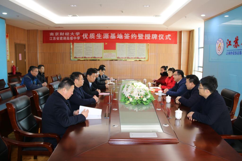 随后,刘浩书记与张书军校长代表两校签订了《南京财经大学优质生源基地合作协议书》,孙勇彬院长代表学校授予江苏省建湖高级中学“南京财经大学优质生源基地”铜牌。