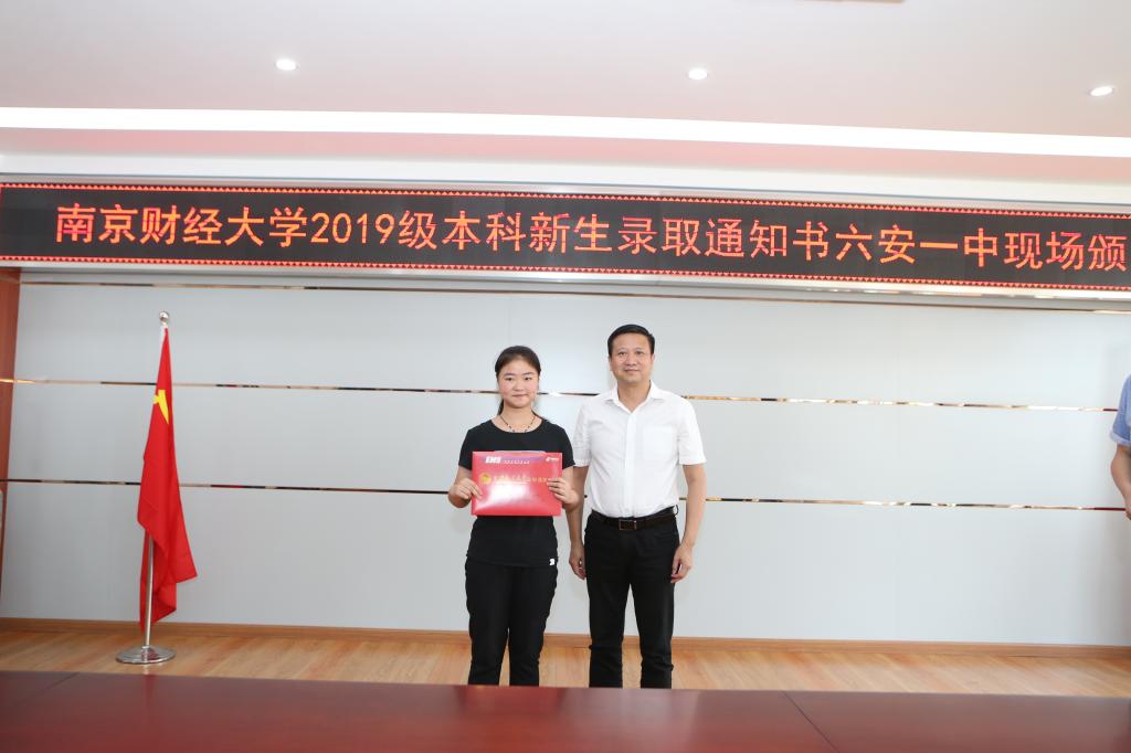 7月24日,校党委书记张利民赴六安市第一中学、金寨县第一中学,为六安地区以及金寨县考取南财的6名2019级新生发放录取通知书。六安市第一中学党委书记、校长李永江,副校长尹孝成,金寨县副县长郑国珍,金寨县第一中学校长全国庆等出席颁发仪式。在六安市第一中学,张利民书记详细介绍了我校历史沿革、办学特色以及近年来在专业发展、科研平台建设、国际交流与合作及人才培养等方面取得的成绩。他勉励新生同学再接再厉,继承南京财经大学“自谦 自信 务实 超越”的校训,在即将开始的大学生涯,锤炼品性、掌握知识、培养能力,成为德智体美劳全面发展的社会主义建设者和接班人。张利民书记还与新生们进行了座谈,就新生们普遍关心的学校专业特点、体育直播平台 师资力量以及辅修专业等问题进行了一一解答,并向2019级新生赠送了印有校徽及“逐梦南财”标识的钢笔。在金寨县第一中学,张利民书记表示,学校将加强与金寨县的合作,与金寨县第一中学合作共建优秀生源基地,吸引更多金寨优秀学子进入南财大学习深造,为国家培养更多的财经类等综合性人才,为积极选拔、输送和培养优秀学生搭建更好的平台,也为双方加强沟通、友好合作、共同发展建立长效机制。在颁发录取通知书的同时,张利民书记还对家庭经济困难新生进行了慰问,并用自身经历勉励同学们培育坚毅、笃定品行,励志前行。他表示,南京财经大学已经建立起“奖贷助勤补免减”七位一体的学生资助体系,要让每一位学子,尤其是家庭经济困难的同学感受到学校的温暖。今天,我们来送“喜气”,也为经济困难学生送来“底气”,去除他们的后顾之忧,让他们步履轻松地迈进大学校门,迎着阳光,开启人生新的旅程。