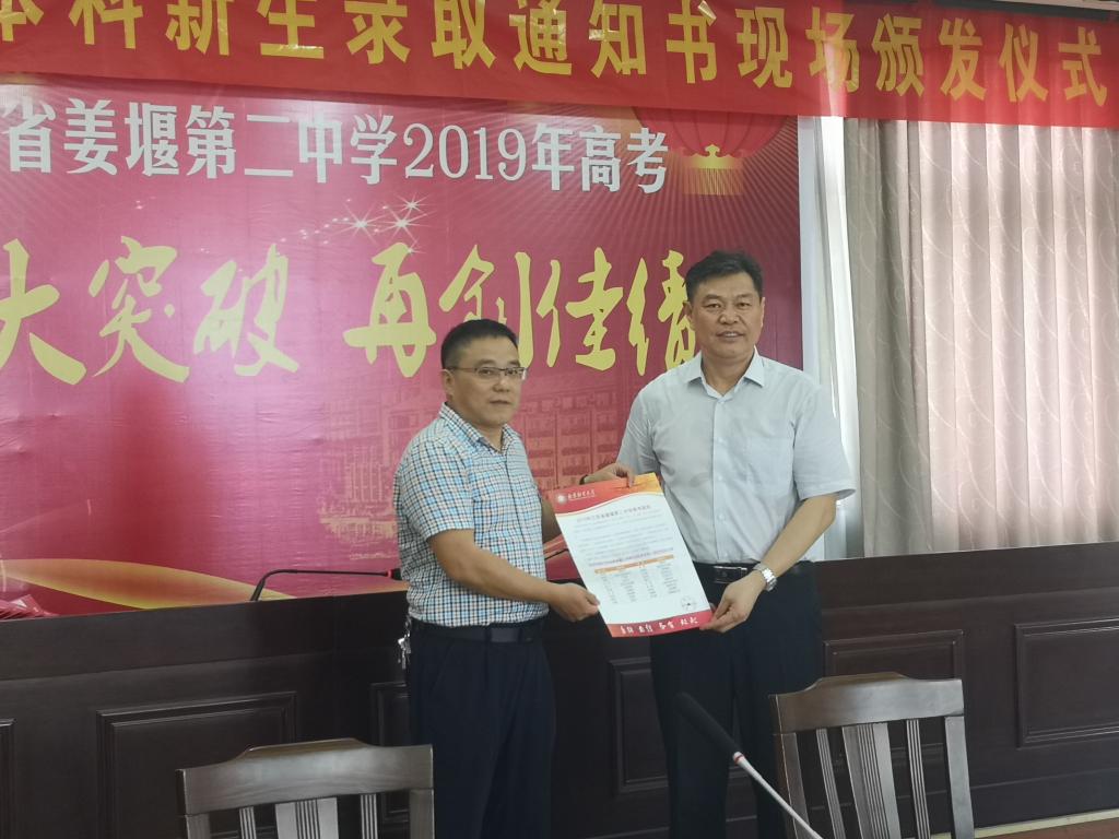 近日,校领导、相关职能部门负责人以及相关招生宣传片区体育直播平台 负责人赴省内外中学,为被我校录取的2019级部分新生现场发放录取通知书。