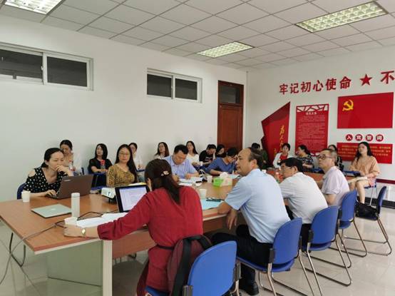 英语系主任莫詹坤老师、院长助理顾晓燕老师详细介绍了目前英语系、法语系的迎评工作进展,对照外国语言文学类教学质量国家标准,对自评表中每一项进行详细说明,着重提出目前遇到的困难与问题。