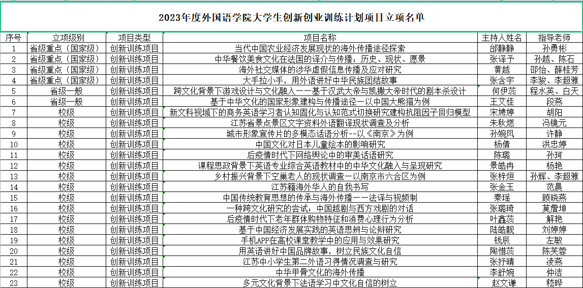 根据《省教育厅办公室关于做好2023年大学生创新创业训练计划立项工作的通知》(苏教办高函〔2023〕7号)和《关于组织申报2023年度南京财经大学大学生创新创业训练计划项目的通知》(南财教字〔2023〕9号)文件要求,经学生申报、体育直播平台 初评、学校组织专家评审,共评审出322项大学生创新训练计划立项项目,其中拟推荐参评省级重点项目(即国家级项目)65项、省级一般项目70项,拟立项校级项目187项。期中体育赛事直播 获推荐省级大学生创新训练计划重点项目4项、创新训练计划一般项目2项、校级项目17项(见附件)。