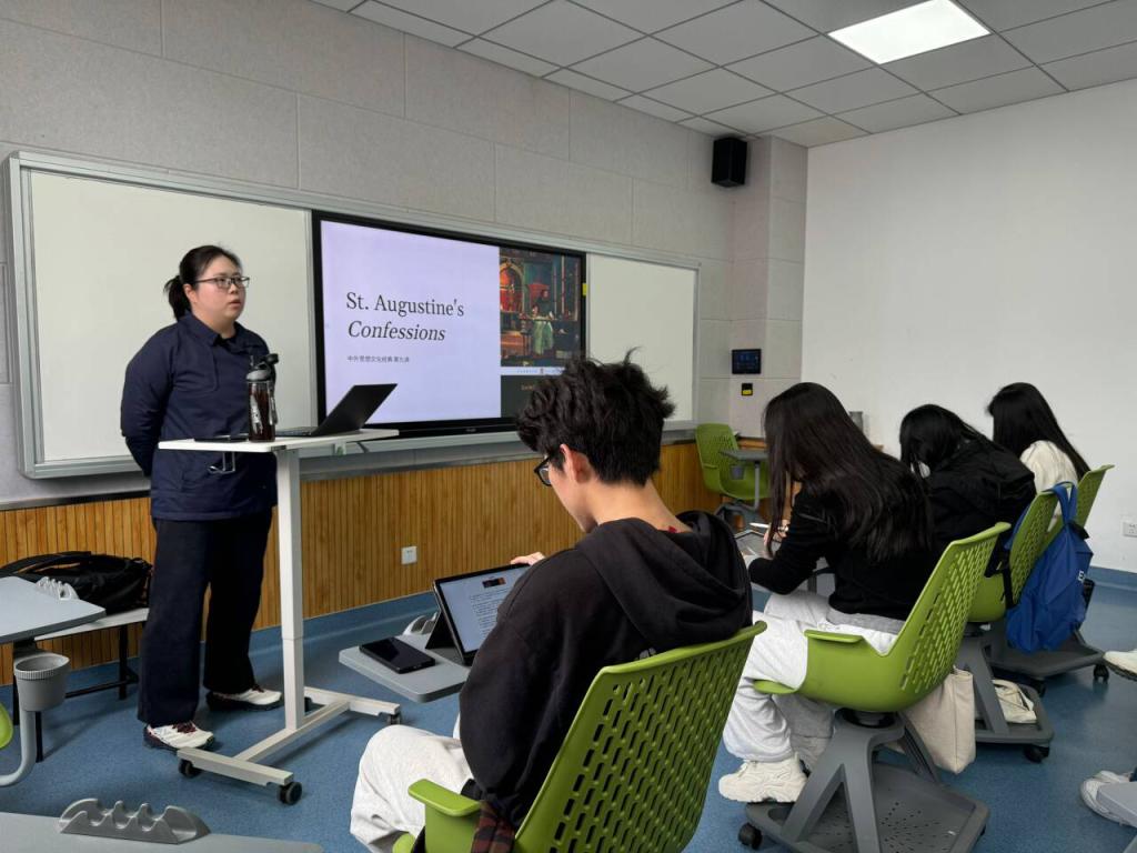 组织观摩教学是课程教学研究活动的重要形式和内容。本院积极组织观摩教学,发动研究生任课教师旁听,热烈欢迎校学位与研究生教育督导参与观摩教学及听课。以段慧、莫詹坤、邹逸君为代表的研究生任课教师,于4月25日下午(13:00-13:45分)在博观楼320教室旁听学习了新进教师李想博士的“中西方经典思想”。该门课程面向23级英(日)语语言文学专业硕士生。李想老师备课充分,旁征博引,介绍了基督教早期神学家奥古斯丁(Augustine of Hippo)的基本背景资料与学术贡献,学生们学习热情很高,每位同学都认真做笔记。课后,听课教师与任课教师进行了短暂但高效的授课经验交流。段慧副教授提出的建议尤其值得借鉴,她从自身授课的经验出发,建议李想老师在讲授奥古斯丁专题时,可以向学生引介德国作家赫尔曼·黑塞创作的中篇小说《悉达多》,进行比较阅读和研究,这样不仅能够更有助于学生对深奥主体的理解,也可以启发学生们作为未来研究者的比较文学研究思路,拓宽其学术研究视野。