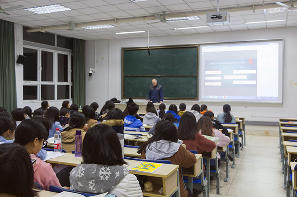 之后,他结合个人早年文字编辑的工作经历向在场的同学们讲述了美国出版业的变化,和美国当代诗歌的多样性。此外,James教授关于美国诗歌与中国诗歌的区别发表了自己的观点。他认为,当代美国诗歌侧重于表露内心,而中国诗歌则着重于遣词造句,诗歌的表达内容是多样的,诗歌应该是用来表达个性的。
