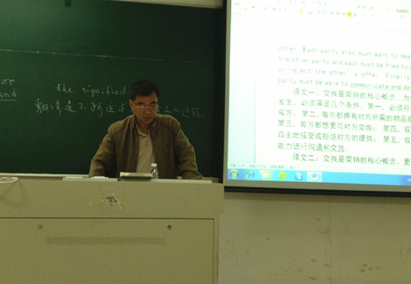 讲座过程中,顾维勇教授针对“十一五”规划教材《商务英语翻译》的误译译例进行了批判性研究,顾教授选举其部分严重误译的译例,分别从同义词语叠用、句子结构的理解、复数问题、专业术语及行话四个方面作了深刻剖析。论述了翻译过程中理解阶段的核心是找到源语的“所指”,找到“所指”是理解的前提;源语的“所指”没有找到,理解公然会出错,翻译无法完成,同时指出商务英语的翻译不可能是“见仁见智”的活动。