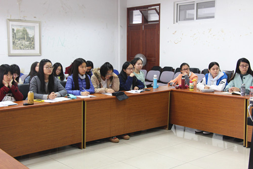 在报告中,周领顺教授首先阐述了 “中国文化‘走出去’”这一主题包括方式和效果两个层次的研究。接着他通过自己现在正在翻译的论著具体解释了“译者行为”概念。他认为,中国文化该走出去并与外国文化相结合十分重要,而讲好中国故事,传播好中国声音,也是中国文化“走出去”战略的内在需求。最后,周教授告诫同学们学习语言要学会分层次、分角度地学习,不可只学习表面的东西,而应该深入领会文化内涵。报告后,周教授回答了同学们的提问。