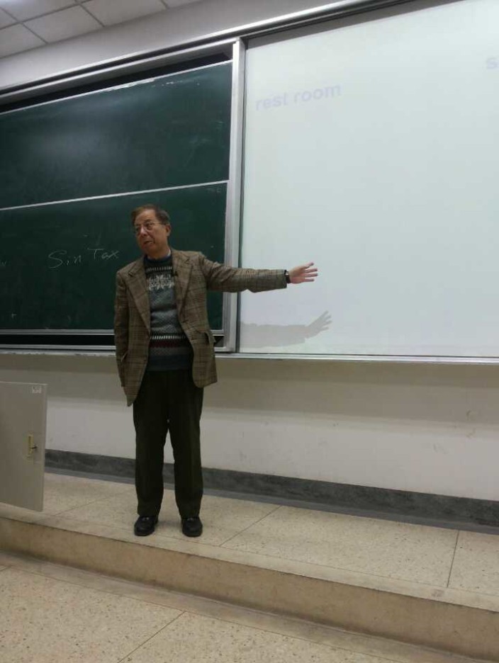 端木教授最后强调文化的重要性,鼓励我们努力学习,“make great efforts to improve your English language”。整个报告气氛十分活跃,同学们十分专心,教授还不忘与同学们交流,回答同学们的问题。晚上八点报告结束,雷鸣般的掌声响起在教室里。对于这场持续了一个半小时的讲座,同学们纷纷表示意犹未尽,受益匪浅。