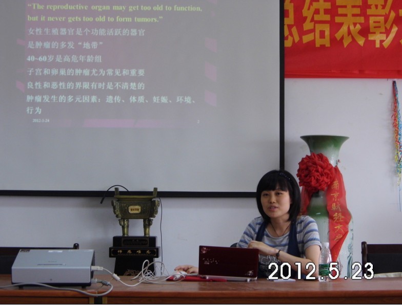 陈医生仔细介绍了妇科常见的肿瘤:良性肿瘤、恶性肿瘤以及女性发病率最高的恶性肿瘤的病因、发病风险因素、临床症状、筛查手段、简要的诊断及治疗,让大家对常见的肿瘤有一定的认识,并通过分析发病风险及肿瘤的特点,介绍了部分肿瘤的自我检查识别、防范知识及定期体检的注意要点。强调在目前工作、生活节奏快、压力大的环境下的女性应尽量做到顺应生物钟的规律进行饮食起居,平时坚持锻炼、保持良好心态对身心健康的重要性。希望每一位女性朋友都拥有健康的身体、乐观的心态、和谐的生活。