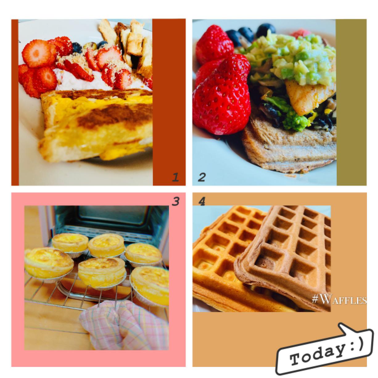 “假期当然是提升厨艺的好时机啦。作为外语专业的学生,学习语言知识的同时也要了解背后的文化。假期尝试了各式西点,对西方美食文化也有了更深的认识。在制作蛋挞的过程里一定要控制牛奶的量哦,否则就会像我做的一样“嘭”地鼓起来……”