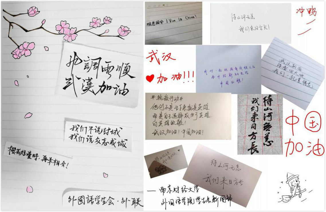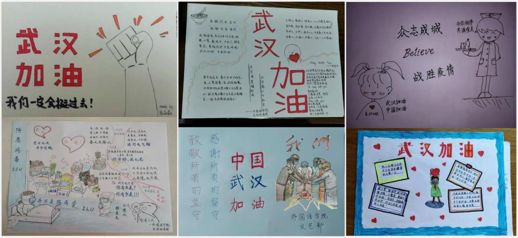 下面是来自体育赛事直播 学生会的祝福。有的以软笔、硬笔书法表达对疫情的关心和美好的祝愿,“我们不说封城,我们说众志成城”、“待山河无恙,我们来日方长”……只言片语饱含满满真情;有的原创设计制作精美海报,为武汉加油,为在疫情之中的每一位同胞加油;有的手绘精美的图文,用丰富的色彩温暖人心,传递爱与希望。