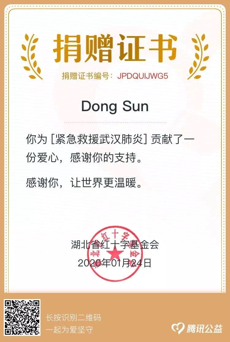 体育赛事直播 孙冬教授为抗击疫情捐款