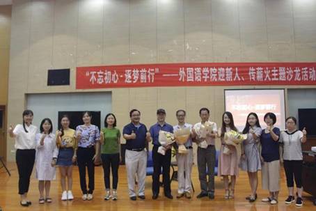 9月9日晚,体育赛事直播 在图书馆四楼世界之窗举办了“不忘初心•逐梦前行”——迎新人、传薪火主题沙龙活动。院党委书记刘浩、院长助理储春花出席了活动。青年教师代表齐梦菲、杨艳、洪忠婷、段燕,辅导员蒋颖异、黄婕及体育直播平台 全体2019级研究生、本科生参加了活动。活动由院党委副书记刘英华主持。