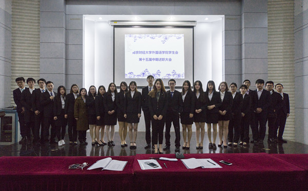 学生会主席孙媛致辞。她首先对部员真诚的发言表示感动,对各部长总结与反思表示感谢。孙媛说,不论是对部长还是对部员来说,适应角色的过程都是一种挑战。虽然最开始的一两个月学生会的运行出现了一些问题,但也看到了大家的努力与付出。同时,她也提出作为学生干部,大家应当保持使命感与责任心,加强彼此的信任与合作,加强例会上的交流。只要齐心协力,一定会得到要属于我们的辉煌。