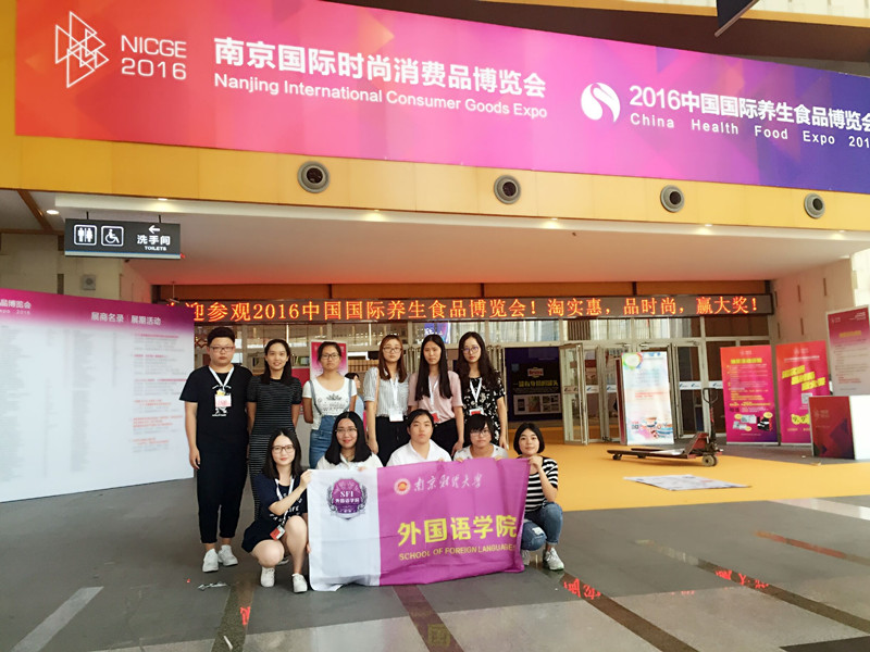2016年第五届南京国际时尚消费品博览会近日在南京国际博览中心举行。体育赛事直播 的24名志愿者在肖辉教授带领下,参与了现场的外商接待和语言志愿服务工作。博览会期间,我校志愿者们负责了泰国馆、捷克馆、波兰馆、印度馆等场馆的翻译工作。