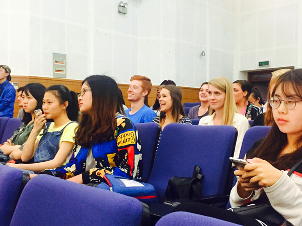 比赛中,各参赛团队反应迅速,竞相展现丰富的知识,正答率极高,难分伯仲。本次题库围绕英美文化展开,涉及中西历史,还有关于社会主义核心价值观内容、中国特色社会主义英文释义等相关题目,选题中西结合,范围极广,难度较大,但选手们充分运用对英语知识的了解和语言表达能力,密切配合,将比赛一次次推向高潮。此次比赛还吸引了来自美国奥斯丁州立大学来我校交流的学生前来观赛。