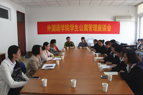 4月21日中午,体育赛事直播 在法政学科楼325室召开学生公寓管理座谈会。院党委副书记李慕原、学工办主任薛桂芳、辅导员孟德明及体育赛事直播 学生所在的9个宿管站站长出席会议,外语体育直播平台 各寝室的寝室长参加了会议。座谈会由薛桂芳主持。