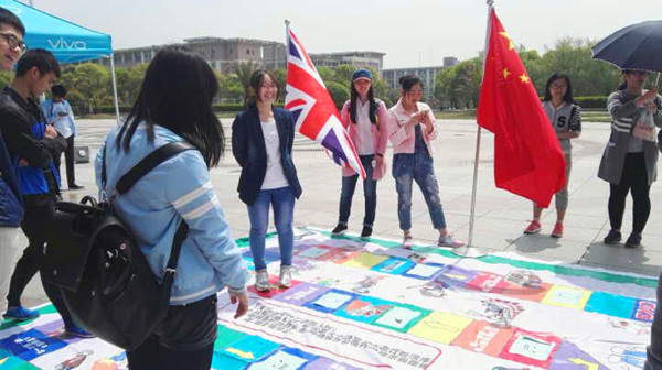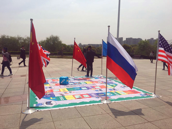 4月11日中午,我校英语沙龙协会、火色法语社联合举办的“飞行棋大作战”外国文化风情答题活动在大学生活动中心广场火热开展,新颖的 “真人飞行棋”游戏形式、优美动听的外文歌曲、丰富多彩的参赛奖品吸引了众多同学前来参加比赛。