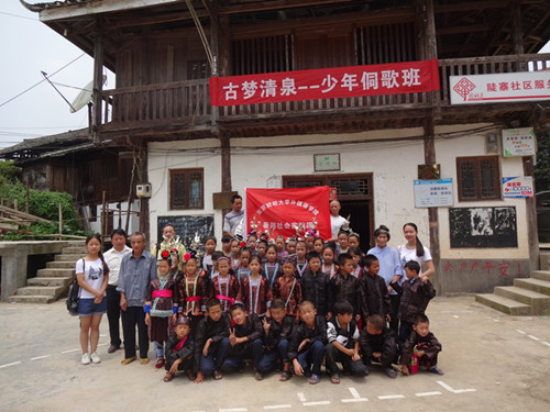 “古梦清泉——少年侗歌班”依托西山镇陡寨村歌师和学员资源,由南京财经大学体育直播平台 学生自行发动,得到学校、体育直播平台 、当地文化部门及基层干群的大力支持,目的在于使濒危的侗族大歌得到“隔代传承”,培养青少年的民族文化意识。歌班日常教学于每日下午四点半至六点半在西山镇小学进行,这里也是今年建立的南京财经大学体育直播平台 大学生志愿实践基地的挂靠点。同时延请当地老歌师授歌,暑期实践团的队员们则对小学生们进行科学文化知识辅导。