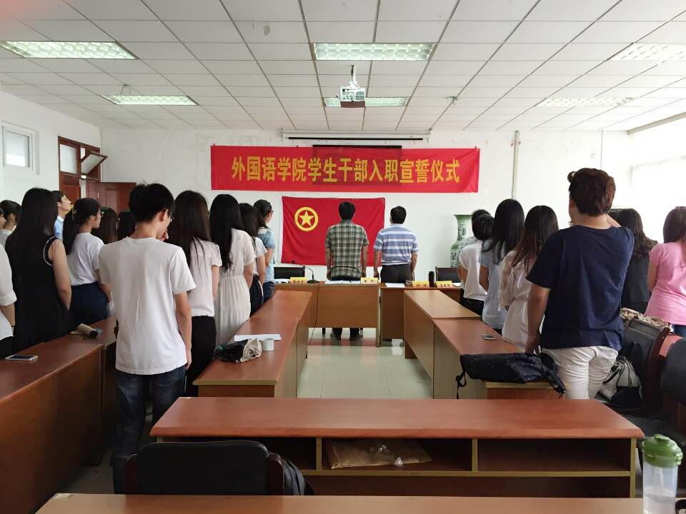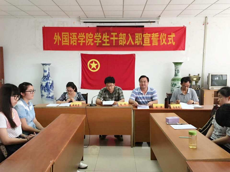 6月24日中午,体育直播平台 学生干部入职宣誓仪式在法政学科楼308会议室举行。体育直播平台 党委书记刘浩,分团委书记薛桂芳,教务秘书兼团学干部潘华,辅导员孟德明以及分团委、学生会全体学生干部出席此次仪式。入职仪式由分团委书记薛桂芳主持。