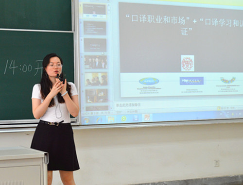 6月11日下午两点,体育直播平台 在法政学科楼116教室举办了题为“探寻口译之路,见证国际风云”的讲座,讲座由策马翻译公司同声传译和交替传译培训师、博鳌论坛口译服务项目工作委员会执行副主任、2014年第二届青年奥林匹克运动会组织委员会首席译员李梦妍老师主讲,体育直播平台 学生聆听了讲座。