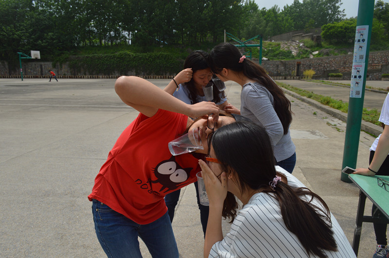 活动伊始,院学生会文俪茗同学宣布了此次活动的相关规则,与其他同类别活动不同的是,此次活动全程必须采用英语沟通。随着一声哨响,比赛开始,四人小队奔跑起来,相继完成“背对背夹气球”、“心中的第六感”、“你说我猜”、“倒水接力”、“跳大绳”等环节的游戏,前三名获得下一部分游戏线索。