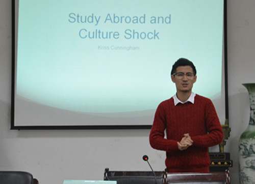 11月12日晚,金阳光出国留学集团留学专家Kriss Cunningham和Francis Dang(党巍杰)应邀为体育直播平台 的同学们做了有关东西方文化差异与留学经验的分享讲座。讲座在法政学科楼308会议室举行。