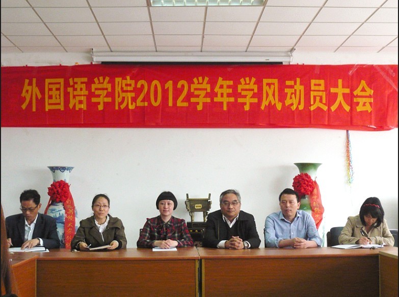 首先肖书记宣布本次学风建设月的督导小组组长及各组成员、强调了学风建设月的重要性并提出对本院学子在纪律以及个人约束,综合素质方面的期望。然后,王院长提出了英语专业就业率的严峻性,他要求外院学子认清形势,严于律己,刻苦钻研,积极参加与专业相关的主题活动,不断努力提高自己视听说各方面的专业技能。孙副院长也做了补充。最后,团总支书记金立林老师还提出在学风建设月期间,体育赛事直播 将会组织一系列主题班会以及主题活动,写作能力测试、英语之窗、学术讲座、专业报告等各方面的活动将会在学风建设月开展。