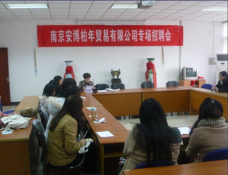 2011年12月5日下午两点南京安博柏年贸易有限公司招聘会在体育赛事直播 会议室举行。南京安博柏年贸易有限公司在体育赛事直播 招聘应届毕业生从事相关外贸出口工作。此次招聘的职位是外销助理。
