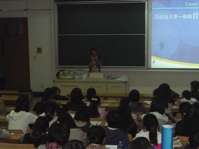 2010年10月20日18:30,美国通用磨坊公司北中国区人事主管成沁瑾女士在JC—108教室作职业生涯规划系列讲座——高校学生职场规划讲座。会议由党总支书记肖辉教授主持。