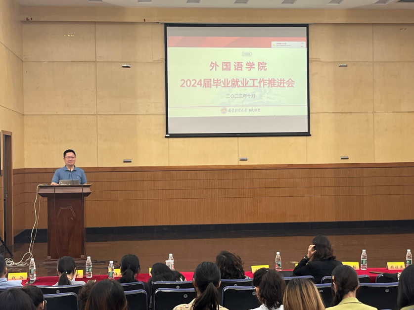 为加强体育直播平台 毕业就业工作引领,帮助毕业生找准目标定位,全方位促进24届毕业生按时毕业、顺利就业,10月13日,体育直播平台 在德济楼报告厅召开2024届毕业就业工作推进会,邀请江苏国泰国盛实业有限公司、江苏汇鸿国际集团中鼎控股股份有限公司以及南京新东方同学们提供就业指导与资源支持。体育直播平台 党委书记李骏、副院长(主持工作)丁强、党委副书记刘璐、院长助理顾晓燕、英语系系主任张晓甜、商务英语系系主任段燕、法语系系主任储春花、本科生毕业班班主任、研究生毕业生导师、毕业班辅导员以及24届全体本科、研究生毕业生参加会议。会议由刘璐副书记主持。