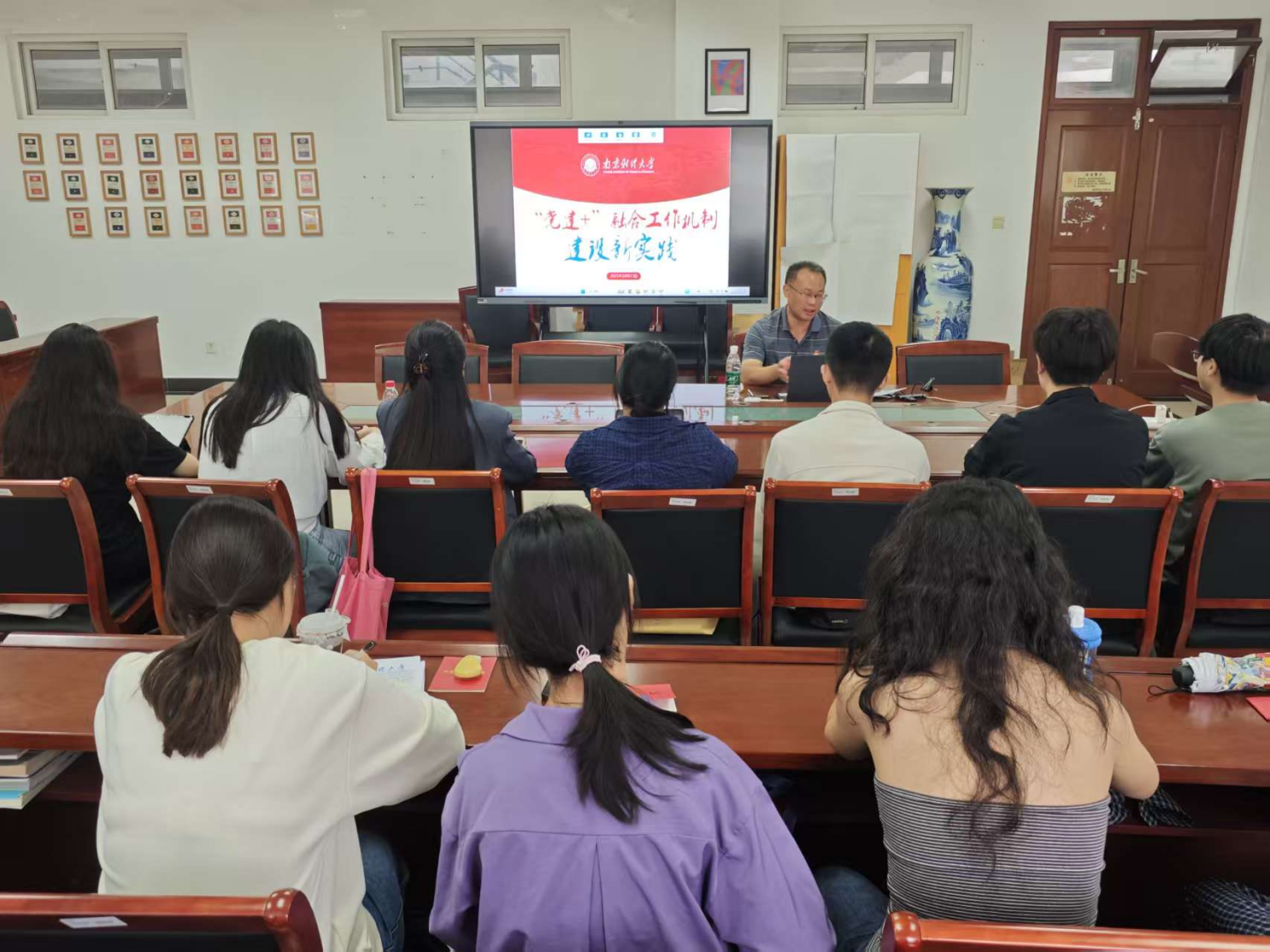 首先,陆斌书记结合学校及体育直播平台 “党建+”工作的生动案例,系统阐释了“党建+”融合机制的核心内涵与实施路径。他指出,“党建+”融合工作机制是以党建为引领,将党建工作与业务工作、学生培养、科研创新等深度结合,通过“党建+学术科研”“党建+文化育人”“党建+实践服务”等模式,实现党建与事业发展同频共振。他以研究生党支部廉洁诗词翻译朗诵大赛活动为例,分享了体育直播平台 将廉洁教育与外语专业能力培养相结合,实现“党建+专业实践”的典型成果。这项活动既强化了学生的党性修养,又提升了其翻译与跨文化传播能力,充分体现了“学贯中外、语出惊人”的育人理念。他提到,此类实践不仅是落实党和国家“一融双高”要求的具体举措,更是培养“又红又专、德才兼备”青年人才的有效路径。