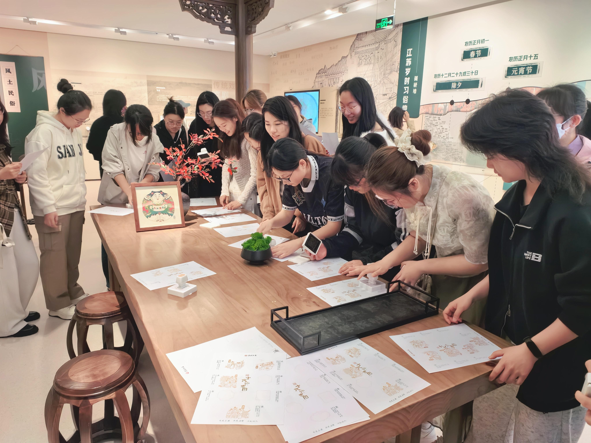 实践体验环节,学员们参与了馆内的拓印活动。将江苏传统民俗图案拓印在纸上,在动手实践中感受传统文化的魅力,也加深了对江苏地域文化的理解。