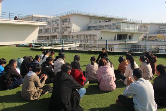 11月20日中午,体育直播平台 “草坪上的思政课”在仙林校区德正楼三楼草坪露台开讲。体育直播平台 党委书记刘浩,党委副书记刘英华,学工办主任、团总支书记潘华,辅导员蒋颖异、黄婕出席了活动,2019级全体学生干部参加了活动。