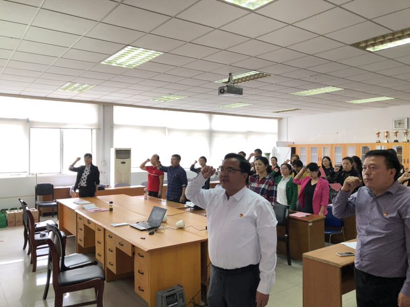 会议伊始,奏唱《中华人民共和国国歌》。随后,由刘浩书记领誓,全体党员面向鲜红的党旗庄严宣誓,重温入党誓词。