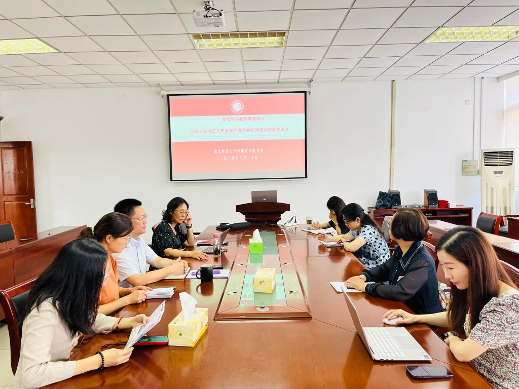6月20日下午,体育赛事直播 在德正楼308召开党纪学习教育专题研讨暨党委理论学习中心组学习会议,全体院领导出席会议,全体党委理论学习中心组成员参加学习。院党委书记李骏主持专题研讨。