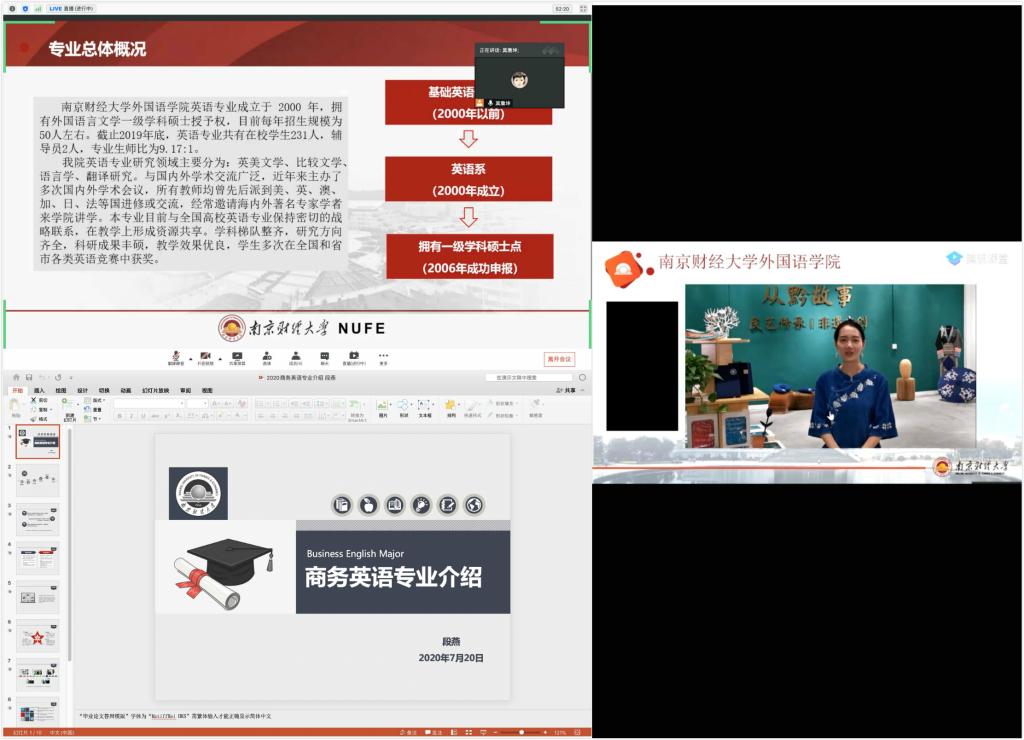 线上直播推介学校体育直播平台 实力。由体育直播平台 党委书记李骏、院长助理顾晓燕、教授孙冬、英语系主任莫詹坤、商务英语系主任段燕组成招生宣传直播团队,全面介绍学校体育直播平台 学科专业特色和实力,并在线为考生答疑解惑,进行互动交流。李骏书记详细介绍了学校概况、招生政策,以及志愿填报的注意事项等。孙冬教授深入解读了体育直播平台 的优势专业英语,让考生们对这一专业有了全面系统化的理解。