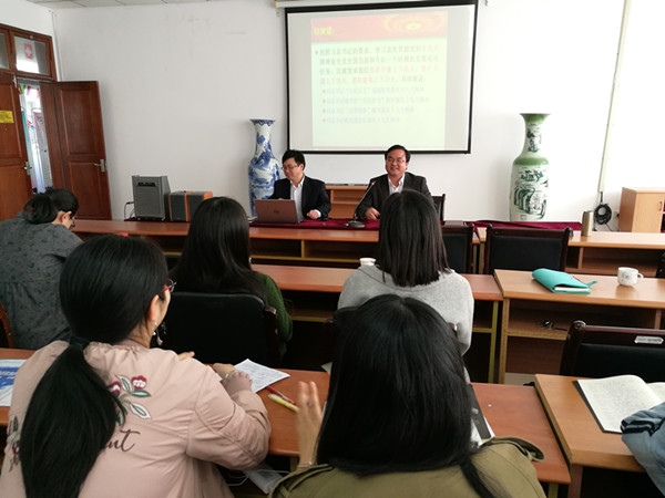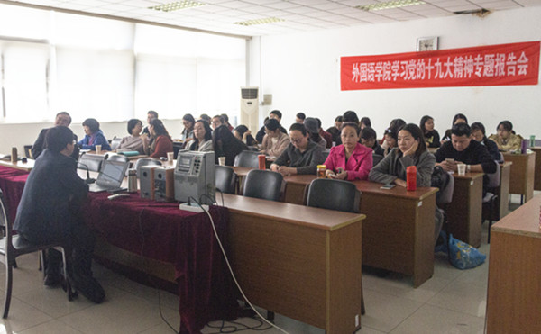 耿步健书记从两方面对党的十九大报告进行解读,即十九大报告的精神以及此次通过的新党章。十九大报告向全体人民明确宣示了举什么旗、走什么路、以什么样的精神状态、担负什么样的历史使命、实现什么样的奋斗目标,耿书记为大家全面解读了习近平总书记的“7.26”讲话。“秉纲而目自张,执本而末自从”,学习十九大精神最根本的是学习习近平新时代中国特色社会主义思想,要深刻认识新时代这个历史方位的重大意义和丰富内涵,深刻认识我国社会主义主要矛盾已经转化为人民日益增长的美好生活需要和不平衡不充分的发展之间的矛盾的重大论断。耿步健书记分析现阶段中国特色社会主义现代化建设的五个方面进行的总体部署,以及十九大精神所采取的保障中国特色社会主义现代化的相应措施。最后,耿步健书记对党章的修改之处进行了列举与剖析。