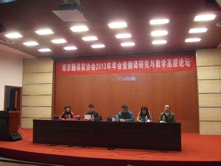 由南京翻译家协会主办、南京工业大学体育直播平台 承办的南京翻译家协会2013年年会暨翻译研究与教学高层论坛于12月28日隆重召开。南京翻译家协会副会长、常务理事肖辉教授、南京翻译家协会理事王克明教授、南京翻译家协会理事陈芙蓉副教授、新增南京翻译家协会会员禇玉襄副教授、陈成辉老师应邀参加了大会。